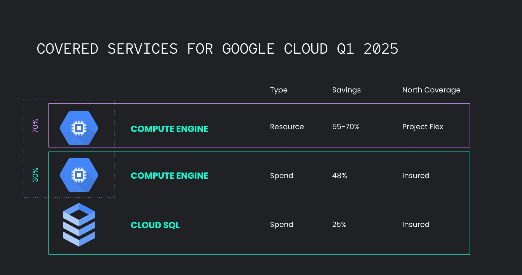 North reserved the right to underwrite each customer individually, however will generally stick to 1 year CUDs for CloudSQL, and 3 year CUDs for Compute Engine (70-30 split, 70% or less being resource CUDs managed by North, 30% or more being flexible spend based CUDs insured by North).
