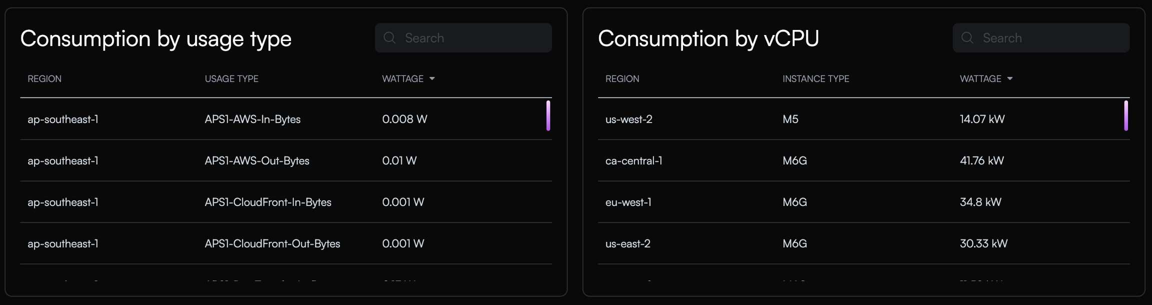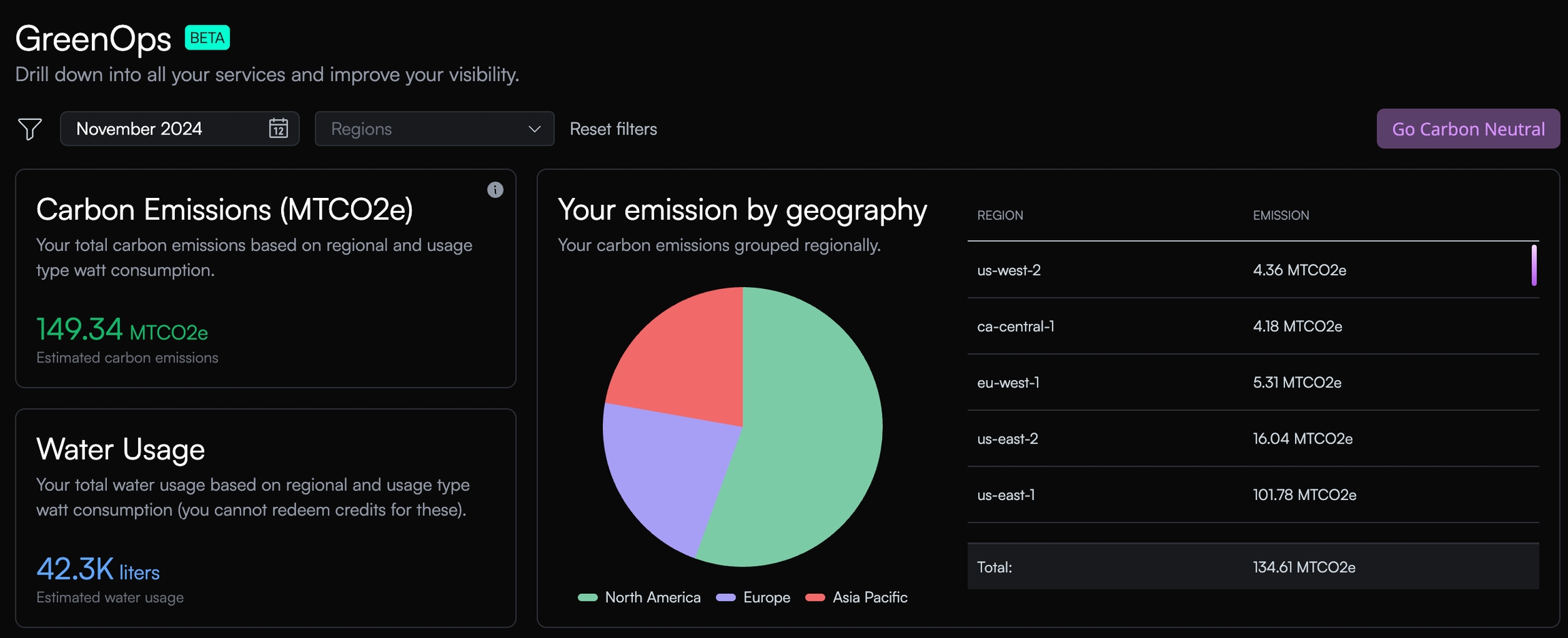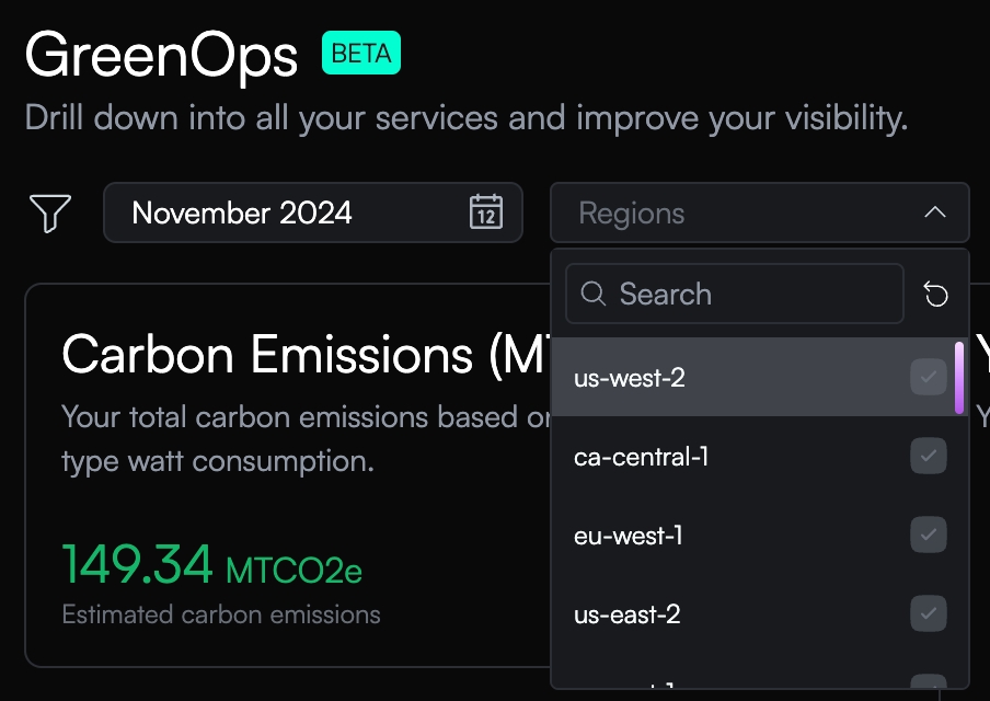 You will be able to access various filters to change the data reporting, or query specific regions or services that have high power draw & carbon output.